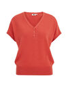 Normal geschnittenes Stricktop mit Knopfverschluss auf der Vorderseite. Mit V-Ausschnitt, kurzen Ärmeln und trendigem Polo-Look.