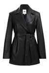 Diese elegante, mittellange Kunstlederjacke in normaler Passform ist zeitlos schön. Mit klassischem Kragen, praktischen Seitentaschen, Knopfverschluss und abnehmbarem Gürtel lässt sie sich vielseitig kombinieren.
