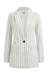 Normal geschnittener Blazer aus Viskose-Leinen-Mix mit Streifenmuster, Knöpfen, zwei Pattentaschen auf der Vorderseite, langen Ärmeln und Rückenschlitz. Gefüttert.
