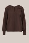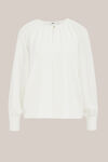 Manchmal weiß man nicht, was man braucht, bis man es sieht. Diese Bluse hat eine normale Passform, lange Ärmel mit goldenen Knöpfen, einen runden, gefalteten Ausschnitt und einen dezenten V-Schlitz mit goldenem Knopf. Die zwei Lagen verleihen dem Artikel eine anmutige und feminine Silhouette.