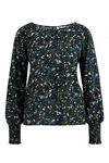 Normal geschnittene Bluse aus 100 % Viskose, Rundhalsausschnitt mit Knopf hinten und langen Ärmeln mit Smokbündchen.