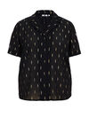 Entdecke zeitlose Klasse mit dieser Bluse in normaler Passform aus Viskose. Das schicke Muster, der praktische Knopfverschluss, der elegante V-Ausschnitt und die bequemen kurzen Ärmel sorgen für einen mühelos eleganten Look.