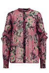 Normal geschnittene Bluse aus fein gewebtem Material mit Muster und Rüschen. Ausgestattet mit rundem Ausschnitt, Knopfleiste und langen Ärmeln.