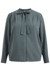 Normal geschnittene Bluse aus fein gewebtem Material mit Schleifen-Detail und verdeckter Knopfleiste. Die Bluse hat einen V-Ausschnitt und lange Ärmel.