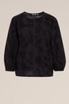 Schlicht, aber nicht langweilig Diese Bluse hat eine normale Passform, einen Mao-Kragen, lange Ärmel mit elastischen Manschetten und einen Knopfverschluss. Die florale All-Over-Stickerei sorgt für eine raffinierte Note. Es tut, was es tun muss, und zwar auf höchstem Niveau.