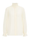 Normal geschnittene Bluse aus fein gewebtem Material mit Strukturmuster und verdeckter Knopfleiste. Ausgestattet mit langen Ärmeln und Rundhalsausschnitt mit Rüschen.