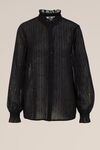 Erstrahle mit Stil! Diese Bluse in Webqualität hat Pailletten, lange Ärmel, einen Knopfverschluss und einen Rundhalsausschnitt mit Rüschen. Unverzichtbar, wenn du bei einem Meeting oder einer Party glänzen möchtest.