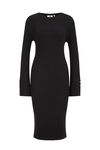 Ein normal geschnittenes Kleid aus einer Viskosemischung mit Rippenstruktur und Zierknöpfen. Ausgestattet mit rundem Ausschnitt und langen Ärmeln. Das Kleid reicht bis übers Knie.
