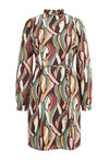 Normal geschnittenes Kleid aus fein gewebtem Material mit Muster und Gürtel. Ausgestattet mit rundem Ausschnitt, verdecktem Reißverschluss und langen Ärmeln. Das Kleid reicht bis zum Knie.