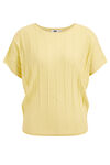 Normal geschnittener Feinstrickpullover mit eingearbeitetem Glitzergarn und Strukturmuster. Ausgestattet mit rundem Ausschnitt und kurzen Ärmeln.