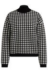 Normal geschnittener Pullover aus Acryl-Mix mit Hahnentrittmuster, Rollkragen und langen Ärmeln mit Rippbündchen.