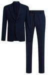 Ein gefütterter Anzug in schmaler Passform aus feiner Webqualität mit zusätzlichem Stretch. Der Blazer hat einen doppelten Knopfverschluss, Klappentaschen vorne, eine Brusttasche (deren Futter als Einstecktuch getragen werden kann) und zwei Innentaschen. Die Hose hat einen Reißverschluss mit Haken und Ösen, zwei Schlitztaschen auf der Vorderseite und zwei Leistentaschen mit Knopfverschluss auf der Rückseite.