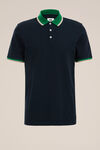 Dieses stilvolle Poloshirt (Slim-Fit-Modell) wird aus einem Baumwoll-Mix hergestellt. Es hat einen Knopfverschluss, einen kontrastierenden Polokragen und kurze Ärmel.
