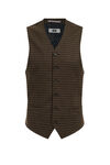 Eine schmal geschnittene Strickjacke in Feinstrickqualität mit einem Muster und Pattentaschen. Das Modell hat einen V-Ausschnitt, einen Knopfverschluss und einen verstellbaren Riemen mit Metallschnalle.
