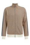 Normal geschnittene Sweatjacke aus Baumwoll-Mix mit Muster und zwei Eingrifftaschen. Ausgestattet mit rundem Ausschnitt, langen Ärmeln mit Streifenbesatz und Reißverschluss auf der Vorderseite.