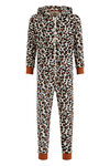 Normal geschnittener Fleece-Anzug mit Muster, Kapuze, rundem Ausschnitt, langen Ärmeln, Reißverschluss, zwei Eingrifftaschen auf der Vorderseite und schmalem Hosenbein mit Rippbündchen.