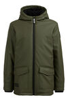 Normal geschnittene, gefütterte Regenjacke im Parka-Stil mit gefütterter Kapuze und Reißverschluss mit Kinnschutz. Die Jacke hat vorne zwei Eingrifftaschen, eine Innentasche und Rippbündchen an den Ärmelabschlüssen.