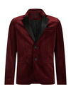 Schmal geschnittenes Sakko aus Samt mit Smoking-Kragen, Knöpfen, zwei Taschen auf der Vorderseite und einer Brusttasche.
