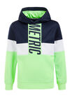 Ein Pullover mit normaler Passform aus technischem, sportlichem Material mit Tape-Details und Colour-Blocking. Das Modell hat eine Kapuze und ein Fleecefutter.Das Modell hat eine Kapuze und ein Fleecefutter.