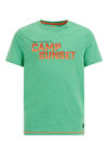 Normal geschnittenes T-Shirt aus Baumwolle mit dekorativem Aufdruck. Ausgestattet mit rundem Ausschnitt und kurzen Ärmeln.