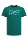 Ein normal geschnittenes T-Shirt aus einem Baumwoll-Mix mit Muster und Aufdruck. Ausgestattet mit rundem Ausschnitt und kurzen Ärmeln.