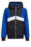 Normal geschnittene Jacke aus wasserabweisendem Material mit Colourblock-Design und zwei Eingrifftaschen. Ausgestattet mit Kapuze und Reißverschluss mit Kinnschutz.