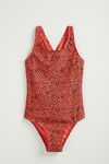 Vollständig gefütterter Badeanzug aus Recyclingfasern mit Leopardenmuster, breiten Trägern und Cut-Out-Detail am Rücken.