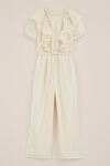 Der perfekte Artikel für einen trendigen Look. Dieser Jumpsuit hat gerade Beine, kurze Ärmel und Rüschen auf der Vorderseite. Das glitzernde Garn und der halbtransparente Stoff sorgen für einen trendigen Look, der mit einem Gummizug in der Taille und einer süßen Schleife abgerundet wird.