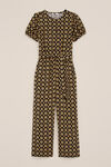 Bequem und praktisch für jeden Tag. Dieser Jumpsuit in normaler Passform mit kurzen Ärmeln verfügt über elastische Bündchen und leichte Falten an den Schultern. Das Kleidungsstück lässt sich mit Druckknöpfen an der Oberseite verschließen und hat einen Gummizug in der Taille, der für einen bequemen Sitz sorgt.