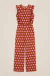 Unverzichtbar im Kleiderschrank der Kids. Dieser ärmellose Jumpsuit in normaler Passform mit Rundhalsausschnitt hat Rüschen mit Stickereien für einen verspielten Look. Der elastische Bund, die geraden Beine und die Seersucker-Textur machen das Must-have bequem und trendy.