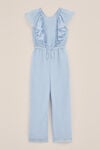 Warum stillstehen, wenn man springen kann? Dieser ärmellose Jumpsuit aus 100 % recyceltem Polyester ist mit Rüschen und einer Schleife versehen und eignet sich perfekt für jeden Sprung, jede Drehung oder jeden Tanz.