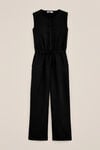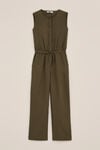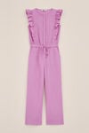Bequem, einfach und stilvoll. Dieser ärmellose Jumpsuit in normaler Passform hat gerade Beine, eine dezente Musselinstruktur und süße Rüschen auf der Vorderseite. Der Knopfverschluss endet knapp unterhalb der Taille, die mit einem Gummizug mit praktischen Kordelzügen versehen ist und so für einen guten Sitz sorgt. Wo auch immer sie hingehen, dieser Artikel kann sie begleiten.