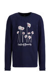 Normal geschnittenes Shirt aus Baumwoll-Mix mit dekorativer Stickerei und Aufdruck. Das Shirt hat einen runden Ausschnitt und lange Ärmel.