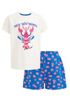 Normal geschnittener Schlafanzug aus Baumwoll-Mix mit Muster und Aufdruck. Das Oberteil hat einen runden Ausschnitt und kurze Ärmel. Die Shorts haben schmale Beine und einen Gummizug in der Taille.
