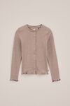Sobald man sie anzieht, kommt das Lächeln von selbst. Diese Strickjacke hat einen Rundhalsausschnitt, Rüschen und einen Knopfverschluss - perfekt, um jedem Outfit einen zusätzlichen Hauch von Fröhlichkeit zu verleihen.