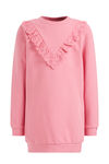 Robe en sweater regular fit de mélange de coton à broderie anglaise en V et bords côtelés. Modèle à col rond et manches longues.