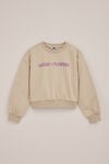 Das wird mit Sicherheit ein neuer Favorit. Dieser Pullover hat eine übergroße Passform, einen Rundhalsausschnitt, lange Ärmel aus Rippstrick, einen dezenten Druck vorne und einen großen Blumenprint am Rücken.