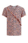 Normal geschnittenes T-Shirt aus Stretch-Jersey mit Muster und Rüschen. Ausgestattet mit V-Ausschnitt und kurzen Ärmeln.