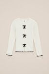 Bequem und trendy Dieses langärmelige T-Shirt mit Rundhalsausschnitt und verspielten Rüschen und Schleifen verleiht jedem Outfit eine fröhliche Note.