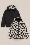 Zwei Looks, ein Modell. Diese Steppjacke mit Stickerei und Kunstfell ist wendbar - sie lässt sich bequem umdrehen und auf links tragen. Die Jacke ist mit einem Reißverschluss mit Kinnschutz, zwei Eingrifftaschen mit Druckknopf und langen Ärmeln mit Rippbündchen ausgestattet.