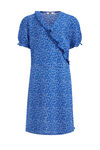 Normal geschnittenes Kleid aus fein gewebtem Material mit Muster und Rüschen. Ausgestattet mit V-Ausschnitt und kurzen Ärmeln.