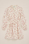 Rüschen, Gummizug und ein Bindegürtel. Dieses Kleid aus 100 % viscose Baumwolle mit V-Ausschnitt und halber Knopfleiste hat es in sich. Die Party kann beginnen!