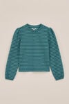 Ergänze die Garderobe der Kinder mit Stil! Dieser regulär geschnittene Sweater aus einer recycelten Polyestermischung hat ein fröhliches Muster und einen Rundhalsausschnitt. Lange Puffärmel runden das Modell ab.