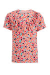 Ein enganliegendes T-Shirt aus einer Viskosemischung mit gemustertem Design und Rüschen. Ausgestattet mit rundem Ausschnitt und kurzen Ärmeln.
