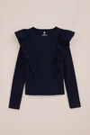 Ergänze die Garderobe der Kinder mit Stil. Normal geschnittenes Shirt aus einer Baumwollmischung. Mit seinen trendigen Rüschen, der Rippenstruktur, dem Rundhalsausschnitt und den langen Ärmeln ist dieses Kleidungsstück endlos stylbar und die ideale Wahl für stundenlanges Tragevergnügen.