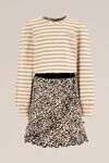 Das ist das Must-have für jedes Mädchen. Das Kleid besteht aus besonders weicher Baumwolle mit einem tollen Muster und hat hübsche Volants. Ein Rundhalsausschnitt, lange Ärmel und ein Bund mit Glitzergarn - auch als Star der Show bekannt - runden das Modell ab.