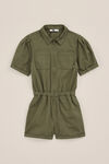 Ein super trendiges Basic-Teil, das zum Spielen gemacht ist! Dieser Playsuit hat eine normale Passform und ist aus 100% Baumwolle. Er hat kurze Ärmel, einen Kragen, einen Reißverschluss, zwei Brusttaschen, einen Gummizug in der Taille und zwei praktische Seitentaschen. Die umgeschlagenen Beine und die gefalteten Schultern vervollständigen den Artikel.