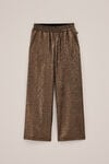Strapazierfähig, glänzend und bereit für Abenteuer. Diese gerade geschnittene Hose hat eine reguläre Passform, gerade Beine und einen elastischen Bund. Sie hat zwei Seitentaschen vorne und eine taktile Textur mit bronzefarbenem Glitzergarn für einen auffälligen Metallic-Look.