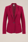 Lass dich von der zeitlosen Klasse umhüllen. Dieser taillierte Blazer aus einer luxuriösen Viskosemischung strahlt mit seinem Knopfverschluss und den zwei Paspeltaschen Eleganz aus. Mit dem normalen Kragen und den langen Ärmeln bist du für jede Gelegenheit gerüstet.