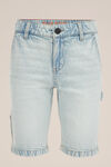 Blue Ridge 5-Pocket-Jeansshorts aus elastischem Baumwoll-Mix mit modischen Carpenter-Details. Ausgestattet mit Reißverschluss und Knopf, kurzem Hosenbein, normaler Bundhöhe und verstellbarem Gummizug am Bund. Bis Größe 128 mit praktischem Schiebeknopf.